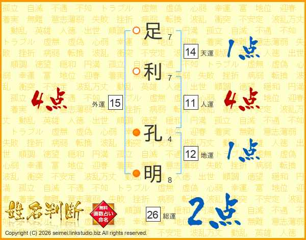 足利孔明さんの総運は26画の2点!