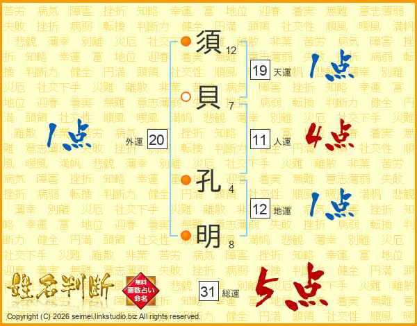須貝孔明さんの総運は31画の5点!
