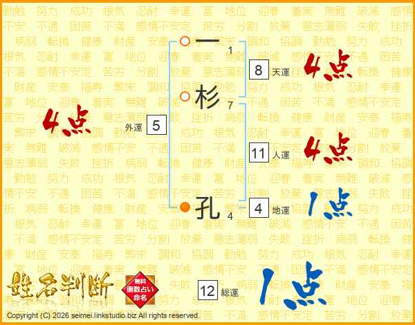 一杉孔さんの人運は11画の4点!