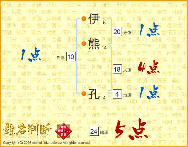 伊熊孔さんの総運は24画の5点!