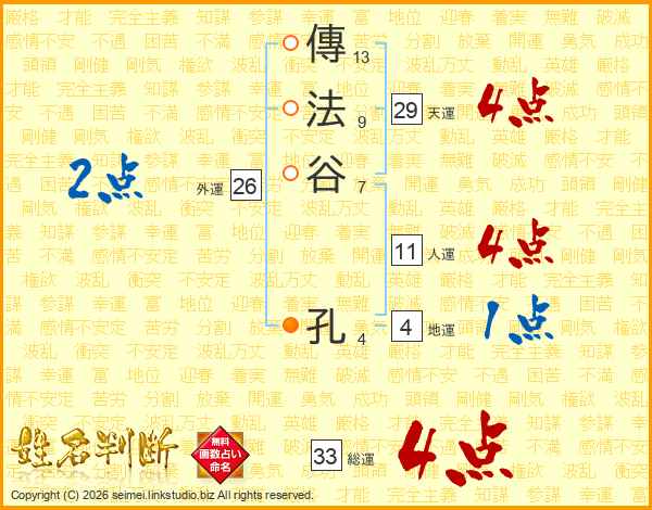傳(13画)法(9画)谷(7画) 孔(4画)