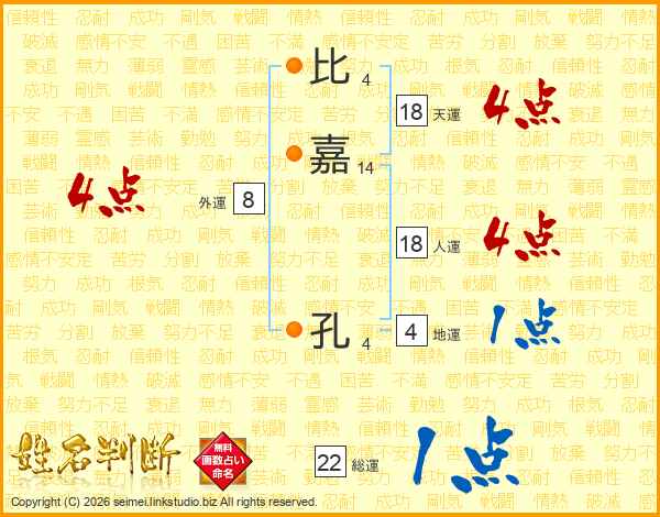 比嘉孔さんの天運は18画の4点!