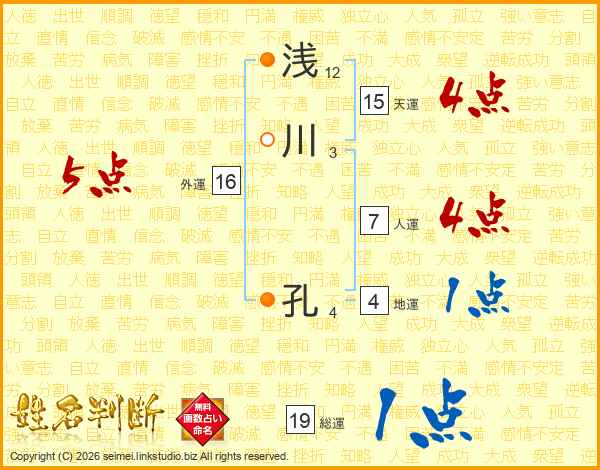浅川孔さんの総運は19画の1点!