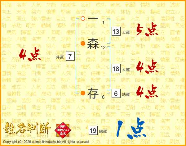 一森存さんの総運は19画の1点!