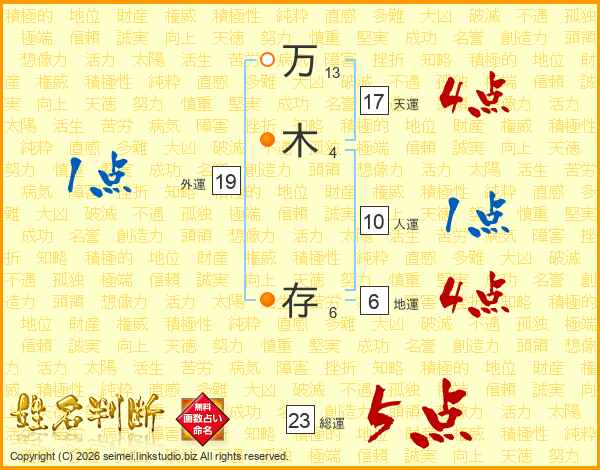 万木存さんの総運は23画の5点!