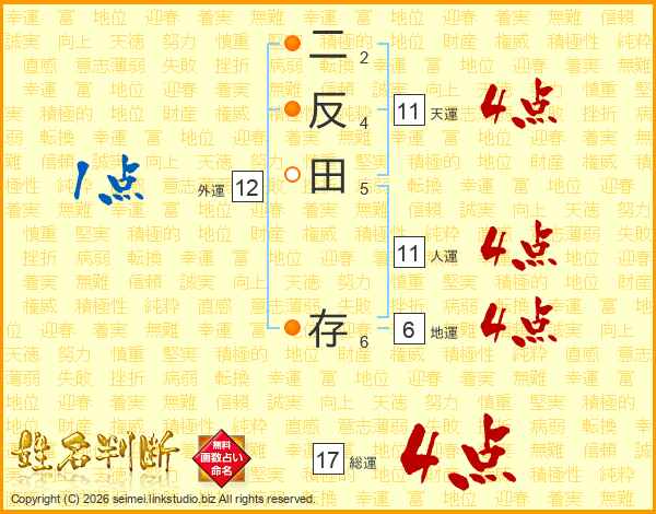 二反田存さんの天運は11画の4点!