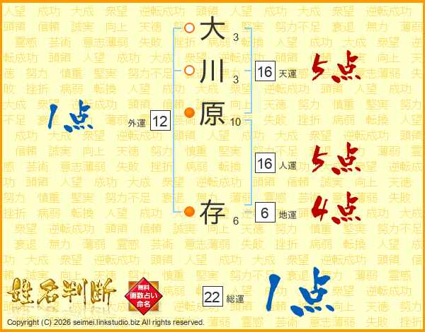 大川原存さんの人運は16画の5点!