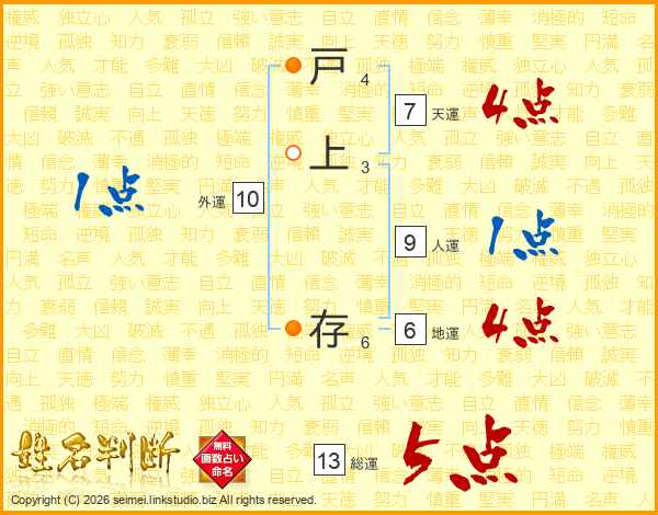 戸上存さんの総運は13画の5点!