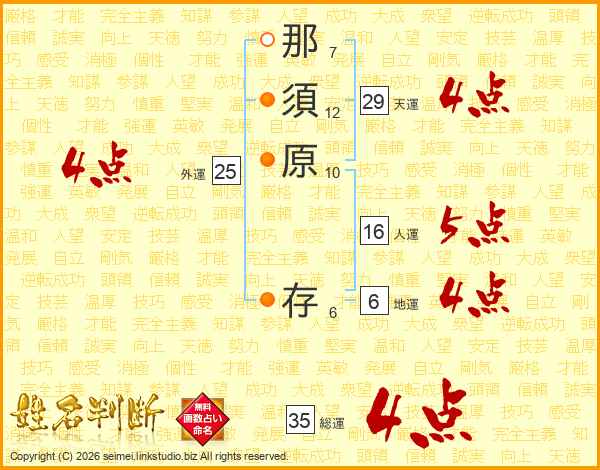 那須原存さんの総運は35画の4点!