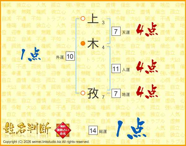 上木孜さんの人運は11画の4点!