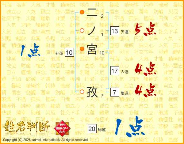 二ノ宮孜さんの総運は20画の1点!