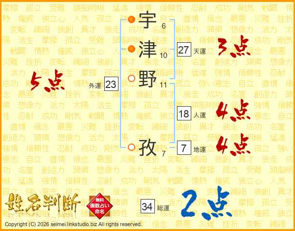 宇津野孜さんの総運は34画の2点!