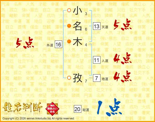 小名木孜さんの外運は16画の5点!