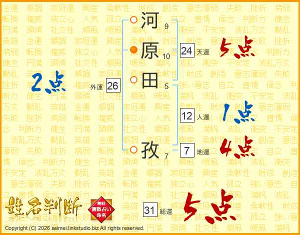 河原田孜さんの総運は31画の5点!