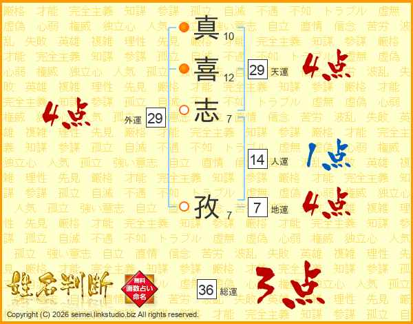 真喜志孜さんの天運は29画の4点!