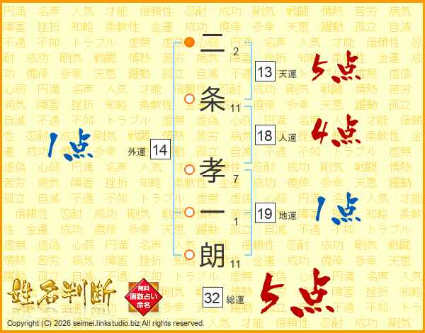 二条孝一朗さんの総運は32画の5点!