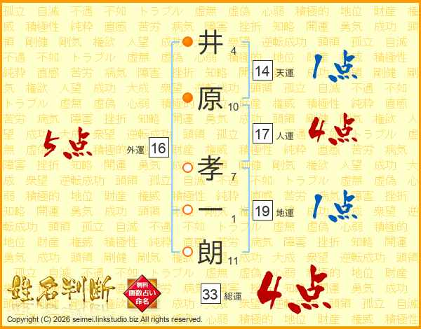 井原孝一朗さんの総運は33画の4点!