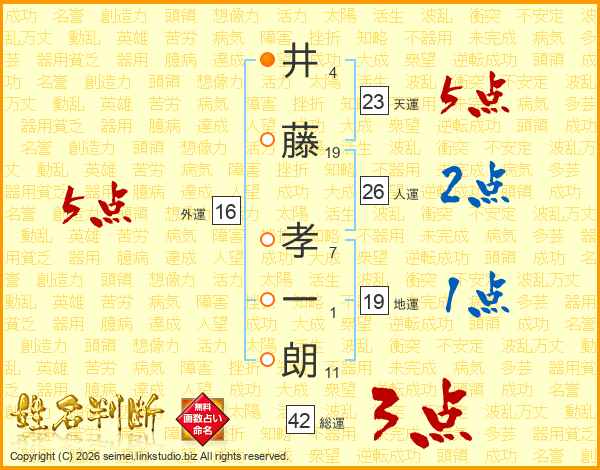 井藤孝一朗さんの天運は23画の5点!
