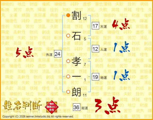 割石孝一朗さんの総運は36画の3点!