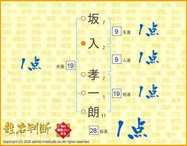 坂入孝一朗さんの地運は19画の1点!