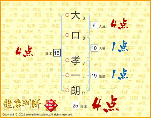 大口孝一朗さんの天運は6画の4点!
