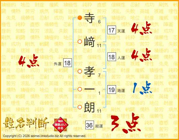 寺(6画)﨑(11画) 孝(7画)一(1画)朗(11画)
