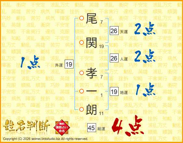 尾関孝一朗さんの総運は45画の4点!