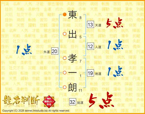 東出孝一朗さんの総運は32画の5点!