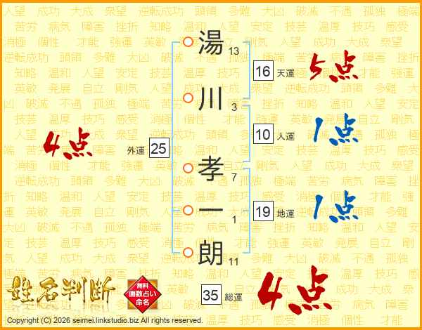 湯川孝一朗さんの総運は35画の4点!