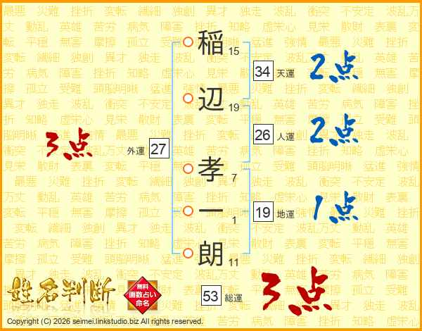 稲辺孝一朗さんの人運は26画の2点!