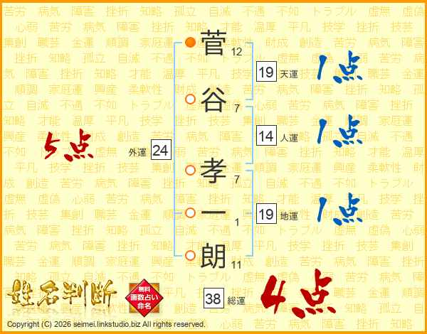 菅谷孝一朗さんの総運は38画の4点!