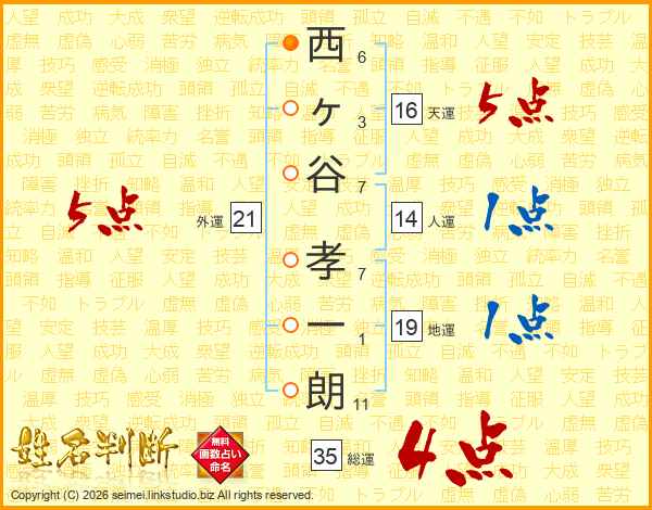 西ヶ谷孝一朗さんの天運は16画の5点!