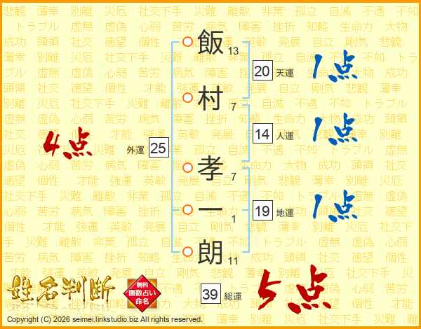 飯村孝一朗さんの総運は39画の5点!