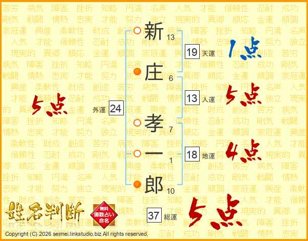 新庄孝一郎さんの総運は37画の5点!