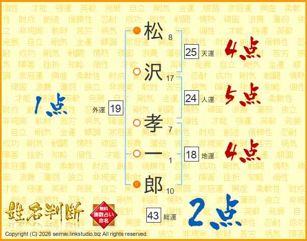 松(8画)沢(17画) 孝(7画)一(1画)郎(10画)