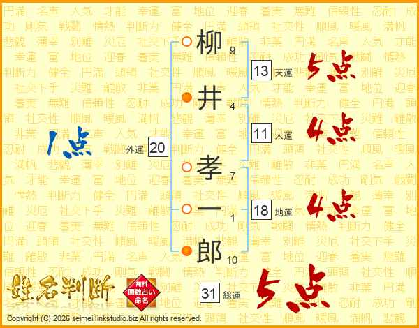 柳井孝一郎さんの総運は31画の5点!