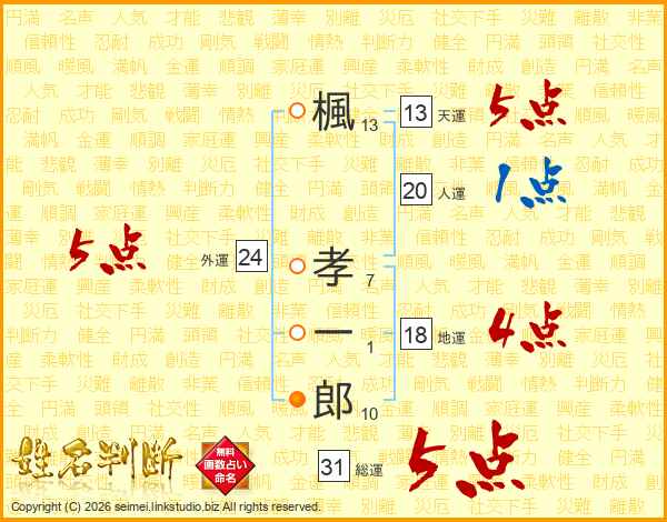 楓孝一郎さんの総運は31画の5点!