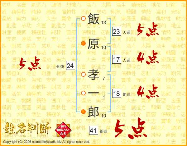 飯原孝一郎さんの天運は23画の5点!