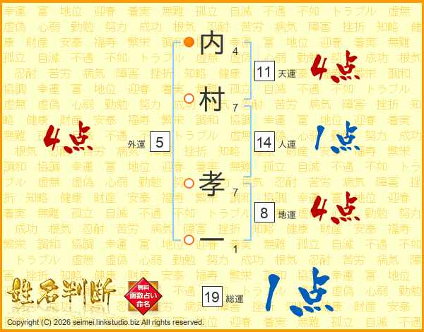 内(4画)村(7画) 孝(7画)一(1画)