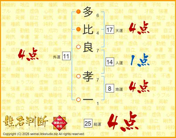 多比良孝一さんの天運は17画の4点!