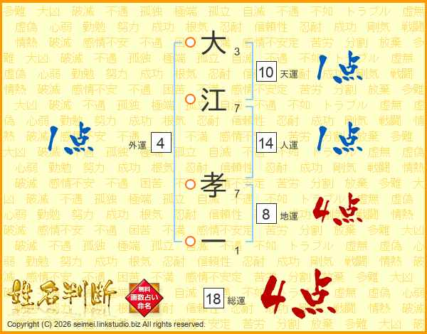 大江孝一さんの総運は18画の4点!