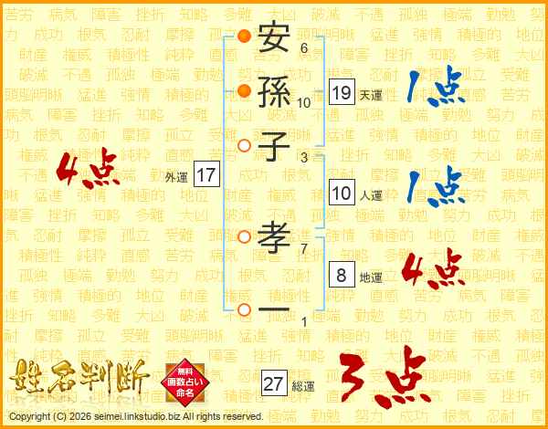 安(6画)孫(10画)子(3画) 孝(7画)一(1画)