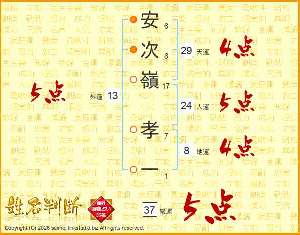 安次嶺孝一さんの総運は37画の5点!