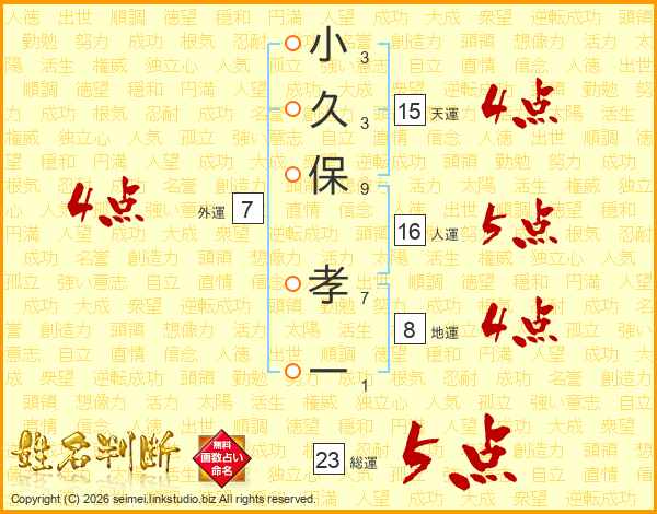 小久保孝一さんの総運は23画の5点!