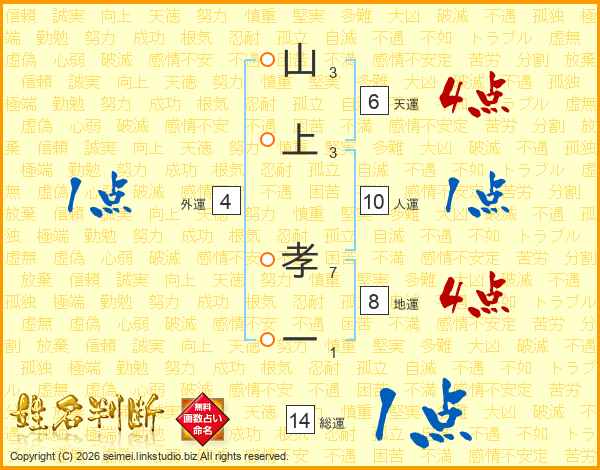 山上孝一さんの総運は14画の1点!