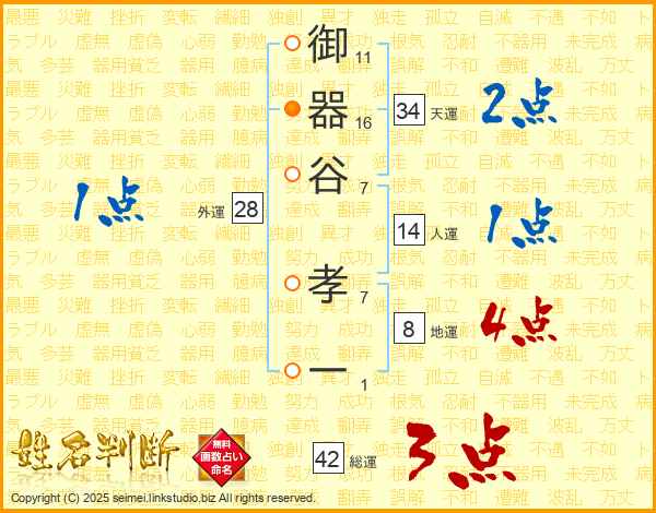 御器谷孝一さんの総運は42画の3点!