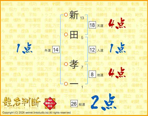 新田孝一さんの天運は18画の4点!