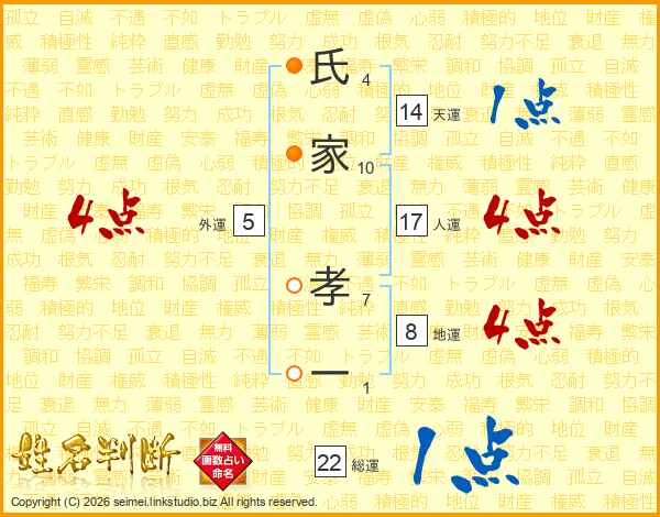 氏(4画)家(10画) 孝(7画)一(1画)