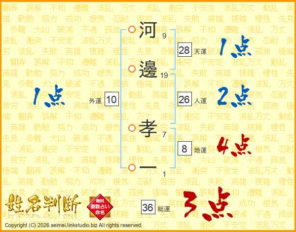 河邊孝一さんの人運は26画の2点!