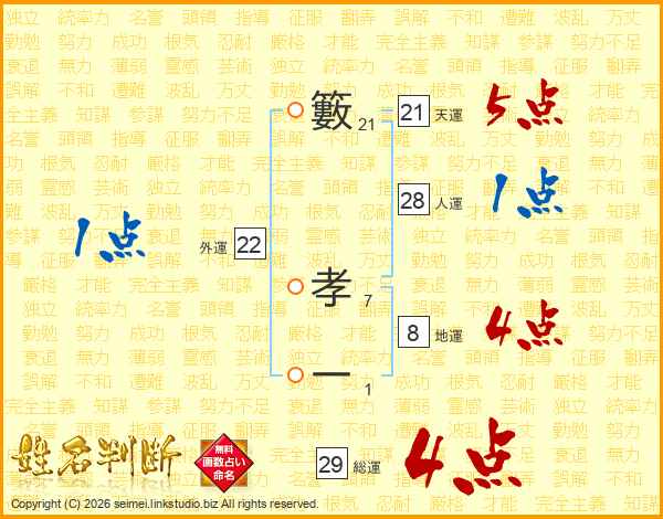 籔孝一さんの総運は29画の4点!